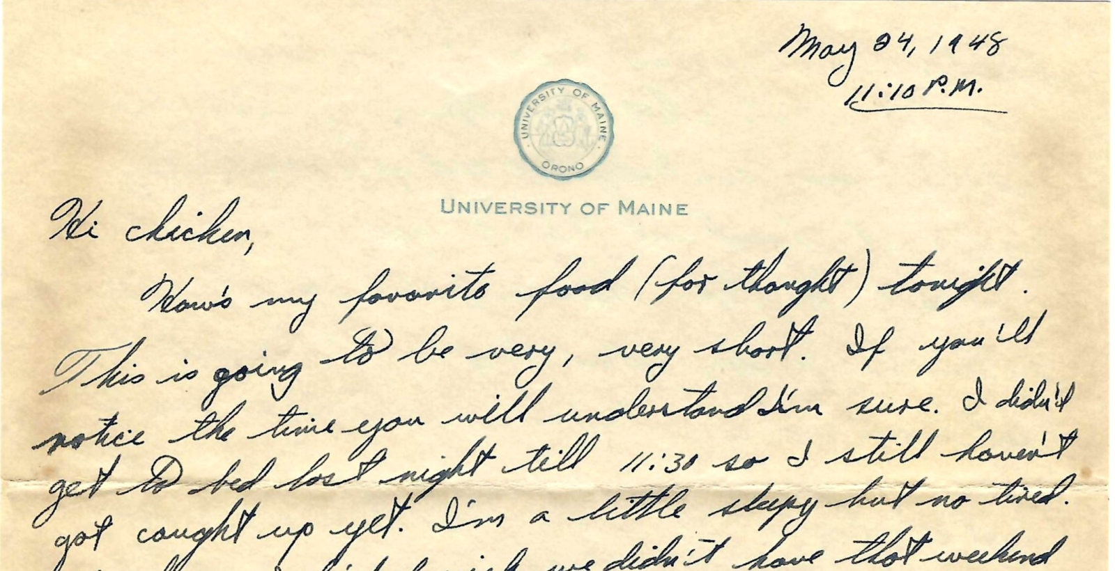 By the way, what did your mother say about Sat. night? Did she notice the wrinkles? I’ll bet you told her it was a swell dance + you danced all night. What a little white(?) liar you are.